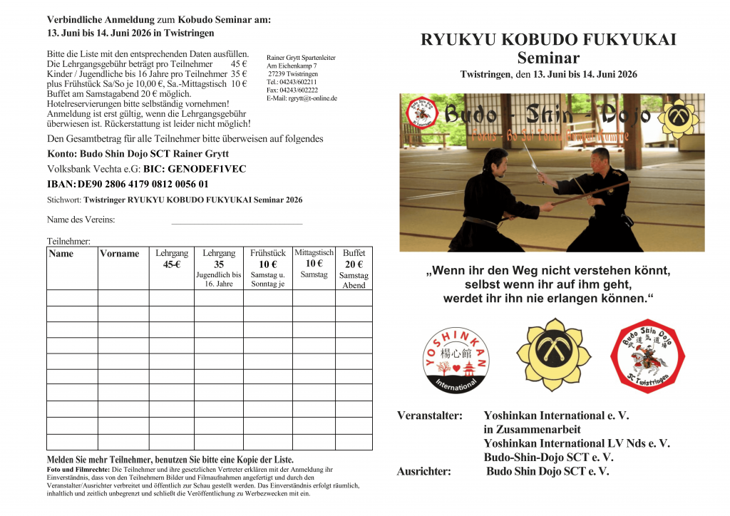 Kenjutsu können Männer und Frauen bis ins hohe Alter trainieren, es bedarf keiner besonderen Voraussetzung außer das Interesse und die Muße eine uralte Budokunst zu erlernen.